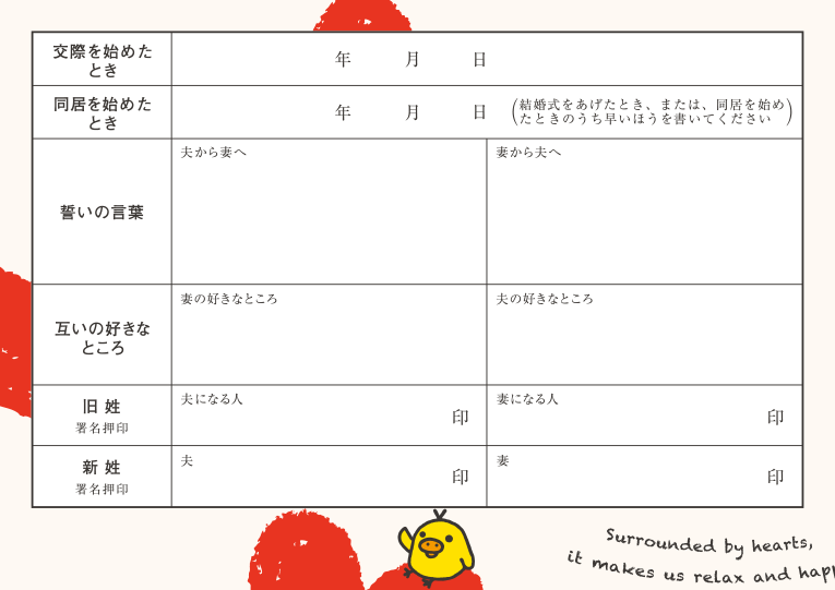 ※婚姻届製作所の婚姻届には元号(平成・令和など)をご自身でご記入いただく箇所がございます。詳しくは同封の婚姻届の書き方をご確認ください。