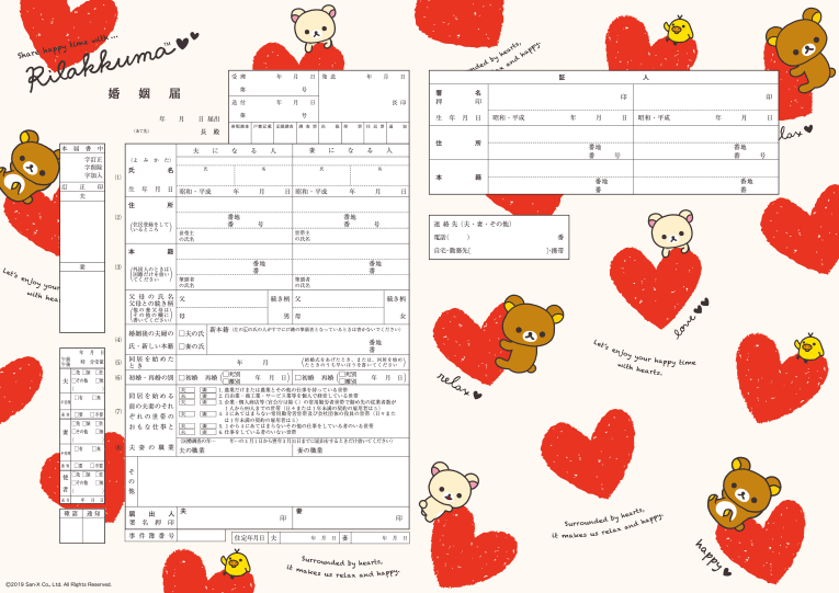 <令和>キャラクター婚姻届 リラックマ(ハートがいっぱい) No:186